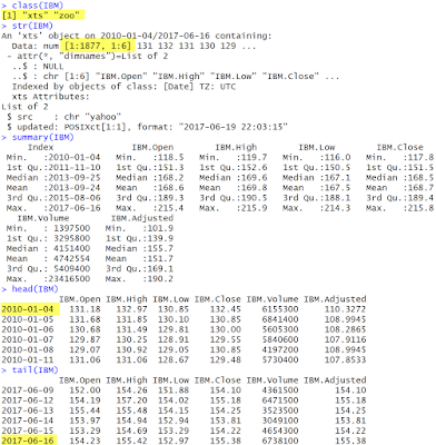 - 使用 class 函數可知回傳物件是xts物件與zoo物件, 其中 xts 物件延伸來自於 zoo物件(注意: zoo不是動物園物件 ^_^).