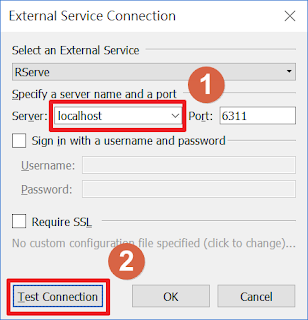 8. Tableau 視窗會顯示 Successfully connected to the external service. 表示Tableau 與 R 連接成功. 注意: 每次啟動Tableau 連結 R 皆須進行設定.